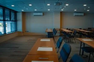 Nossas salas de eventos são equipadas para receber palestras, reuniões e diversos tipos de encontros profissionais, garantindo o sucesso do seu evento com serviços de alta qualidade.